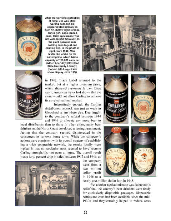 Part of the Brewing Beer in the Buckeye State Series, this second of five volumes giving a pictorial history of Cleveland breweries covers the Quincy Avenue Brewery, first home to Peerless automobiles and later to Carling's Black Label Beer. Brewing began in 1934 and continued until 1971, while the company rose to become the nation's fourth-largest brewer before sales rapidly declined, leading to the plant's sale to the C. Schmidt Brewing Company of Philadelphia, which remained there until 1984. In addition, the book covers the related Carling breweries in Belleville, IL., St. Louis, MO., Tacoma, WA., Frankenmuth, MI., Natick, MA., Baltimore, MD., Atlanta, GA., Phoenix, AZ., and Fort Worth, TX. Spiral-bound, it has 76 pages and more than 500 images, mostly in color, of people, buildings, labels, signs, cans, national magazine advertisements, and you name it.