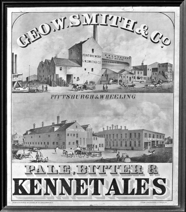 When one thinks of the city of Pittsburgh, the first images that generally come to mind are those of massive industrial mills producing the steel and iron products that the nation used to build automobiles and buildings for many years. Operating those mills were thousands of laborers who would work all day in the hot factories before coming home at night looking for some liquid refreshment. As in many cities around the world, that refreshment would come from the simple golden beverage known as beer. To satisfy that thirst, the production of beer, ale, and porter became a huge industry in its own right in the city and surrounding area from the late 1800s through the 1960s. Pittsburgh itself was home to more than sixty breweries throughout its history, and while that number is far less than the number of breweries seen in cities such as Philadelphia, Chicago, Cincinnati, and Milwaukee, the Greater Pittsburgh area (comprised of Allegheny County and parts of neighboring Westmoreland, Beaver, Butler, and Washington Counties) was home to an astonishing number of brewers, numbering well over 100 and rivaling nearly any other metropolitan area of the country. Suburban breweries dotted the landscape in this area because of the area’s natural geography, consisting of the Monongahela and Allegheny River Valleys combining to form the Ohio River Valley. Steel mills and various associated industries were at one time plentiful throughout these valleys, even in towns far removed from downtown Pittsburgh. In the pre-Prohibition era, from roughly 1900 to 1920, seemingly every town of any consequence had its own brewery. Prohibition closed the majority of these on a permanent basis, although after its repeal in 1933, some of these plants reopened their doors, such that more than twenty breweries remained in business in Metropolitan Pittsburgh by 1940. As the region’s steel industry gradually declined from the 1950s through the 1980s, its brewing industry did as well, a victim of corporate mergers, the changing economy, and overwhelming competition from national power brewers such as Anheuser-Busch, Miller, and Coors. Nearly all of the city’s steel mills were gone by the early 1980s, and similarly, only one brewery remained in the city, the Pittsburgh Brewing Company with its venerable Iron City brand of beer. While that company has had many financial ups and downs since that time, it remains in business as of 2012, a testament to its resilience just like the city of Pittsburgh itself. The scope of this book is to present a pictorial history of the prominent breweries of Pittsburgh and surrounding areas, with a primary focus on the “Big Three,” the Pittsburgh, Duquesne, and Fort Pitt breweries. The Pittsburgh Brewing Company was formed in 1899 from the merger of an amazing 21 separate brewing concerns in the region, making it the largest brewing corporation in the state and the third-largest in the country, with stock worth nearly $20,000,000. The merger involved the following breweries in Pittsburgh: Iron City, Phoenix, Baeuerlein, Eberhardt & Ober, Ober, Keystone, Straub, Wainwright, Winter, Nusser, Lauer, Seiferth, Hippely, and Hauch. In addition the merger included plants in Uniontown, Latrobe, Connellsville, McKeesport, Mount Pleasant, Scottdale, and Jeannette. The Wainwright Brewing Company in the Lawrenceville district first opened in 1818, and while that plant closed with Prohibition, it gives Pittsburgh Brewing an ongoing history of nearly 200 years, topping even that of eastern Pennsylvania’s D. G. Yuengling & Son, known commonly as “America’s Oldest Brewery”. The Pittsburgh Brewing Company barely survived Prohibition and later returned to its status as the city’s top brewer. Few brands of beer in the United States have maintained a closer identity with their cities as Iron City, helped by its heavy advertising with the highly successful local sports trio of the Steelers, Pirates, and Penguins. Although its century-old plant in Lawrenceville closed in 2009, the brand continues to be brewed in nearby Latrobe and new ownership of the plant has given Pittsburgh residents reason to be optimistic about the future of the brand for the first time in many years. Following in the footsteps of the Pittsburgh Brewing Company, the Independent Brewing Company formed in February 1905 as a merger of eighteen remaining area brewers, with a greater emphasis on the outlying areas. In Pittsburgh, the company consisted of its flagship Duquesne Brewing Company plant as well as the assets of the unfinished and bankrupt Highland Brewing Company, which was subsequently abandoned. Also joining the merger were the Lutz brewery in Allegheny; American and Hoehl breweries in Millvale; Gambrinus and New Kensington breweries in New Kensington; and breweries in Carnegie, McKees Rocks, Butler, Beaver Falls, Homestead, Charleroi, Monessen, Mount Oliver, Braddock, Latrobe, and Monongahela. The company’s capital stock was more than $13,000,000, and its overall annual capacity was 400,000 barrels. The company survived Prohibition and reverted to the Duquesne Brewing name; by the 1940s it was one of the country’s ten largest brewers, before a long gradual decline led to the company closing its doors in 1972. Nearly forty years later, however, the brand found new life, produced in Latrobe and marketed throughout the region with great success so far. Fort Pitt was formed as a stock company in suburban Sharpsburg in 1906, where it built a huge modern plant and saw great success in the post-Prohibition era. Brewing at the site continued until 1957, when the company reorganized and became heavily involved in building and selling jukeboxes and a wide range of other electronic devices, renaming itself as the Seeburg Corporation. The Fort Pitt brand of beer lived on for another thirty years however, produced at breweries in Baltimore and later Smithton, PA. With two centuries of history in the rear-view mirror, the Pit